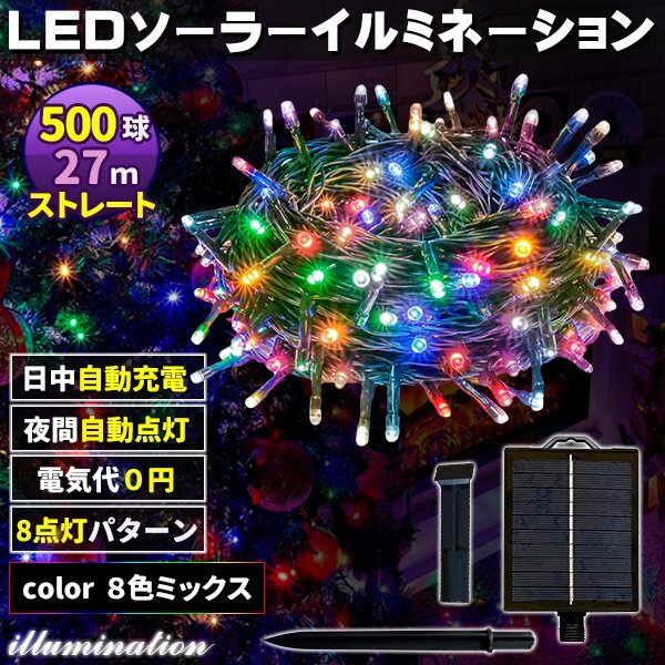 - ソーラー イルミネーション 屋外 クリスマス ストレート 屋外用 イルミネーションライト 500球 8色