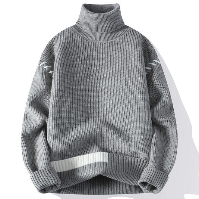 > 新品高級感 ニットセーター カシミヤウール混 タートルネック トップス メンズ プルオーバー 無地 ゆったり おしゃれグレーお色選択可