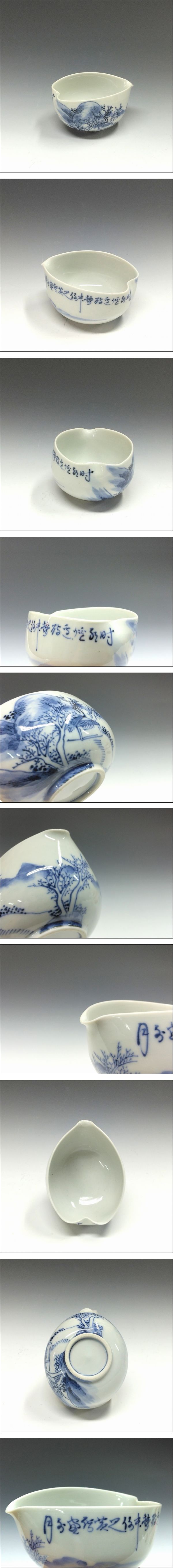 - 名窯◆◇清水焼│Kiyomizu ware(京都,大正/1910年代頃) 手描き染付 山水文詩画賛 湯冷/ 茶海◇◆煎茶道具 台湾茶 中国茶 dy14069-o