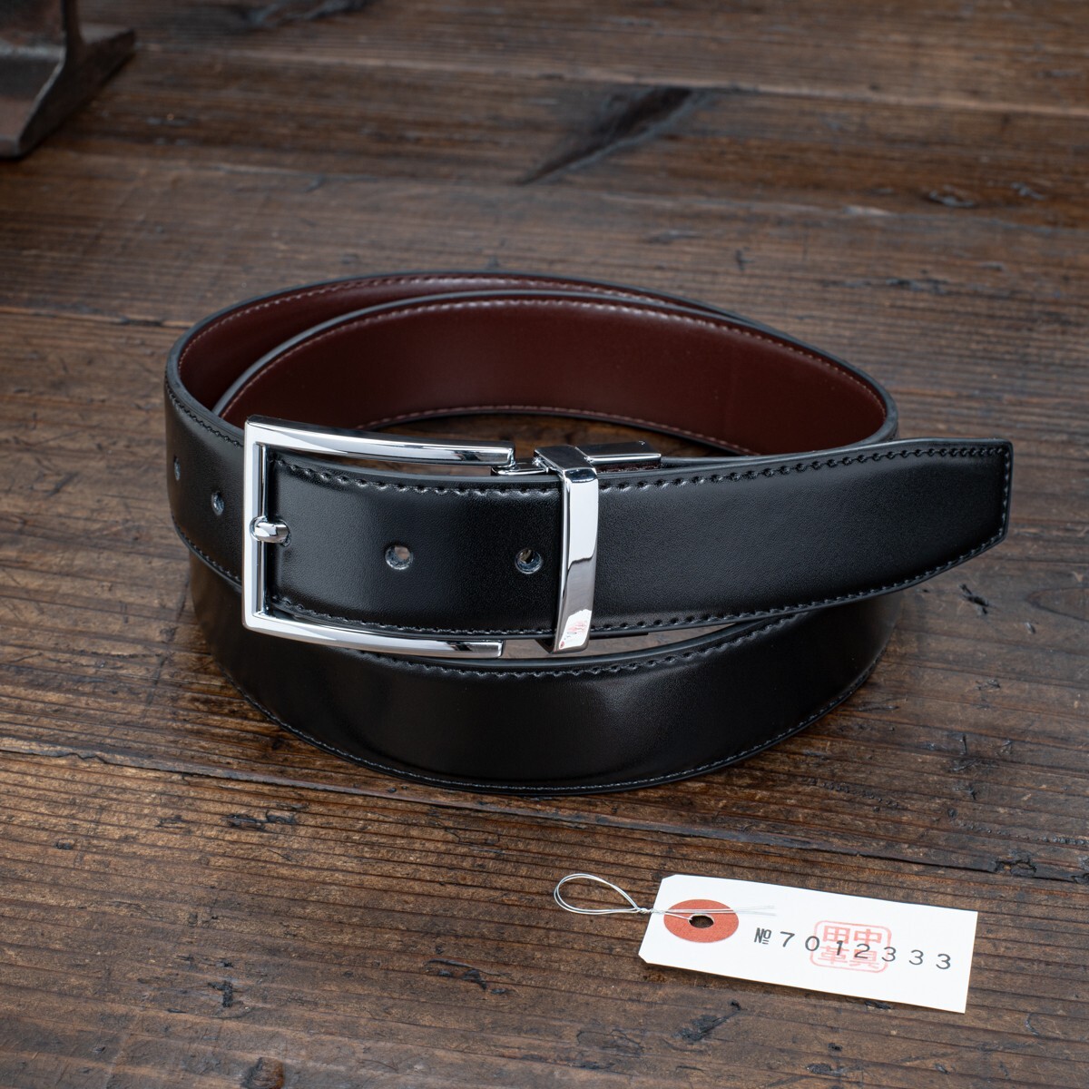 - リバーシブル【本革】イタリアンレザー スタンダードバックル メンズ ベルト ビジネス カジュアル 新品 未使用 送料無料 1円 茶黒 田中革具