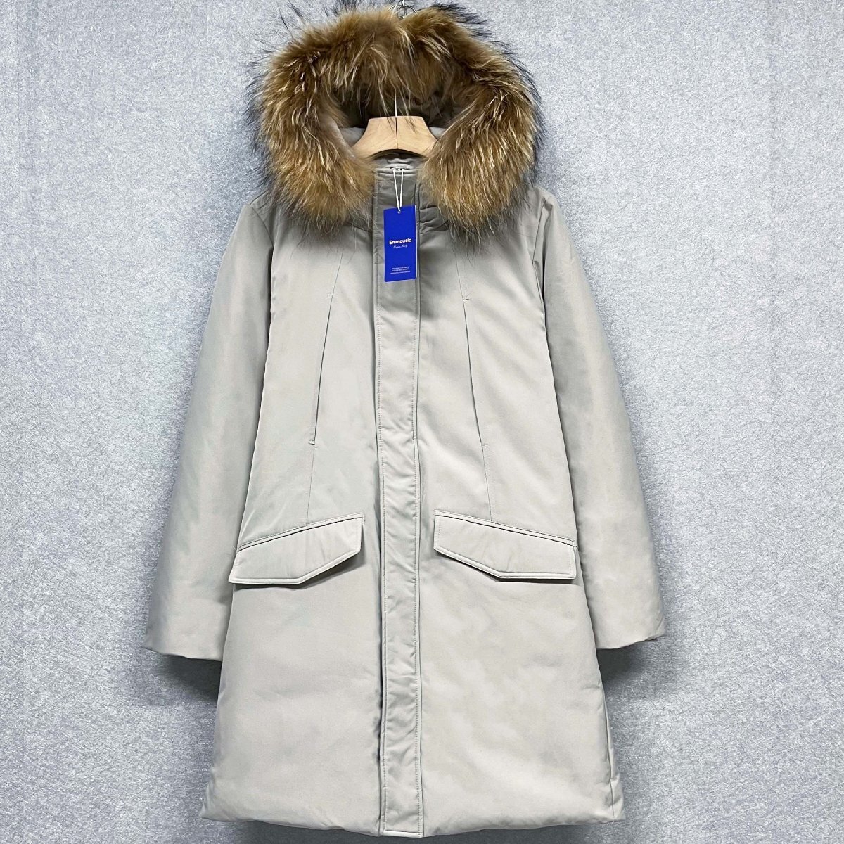 > 高級・ダウンジャケット 定価11万◆Emmauela・イタリア・ミラノ発◆ダックダウン90% 豪華毛皮 防風 ロング丈 コート アウトドア 2XL/52