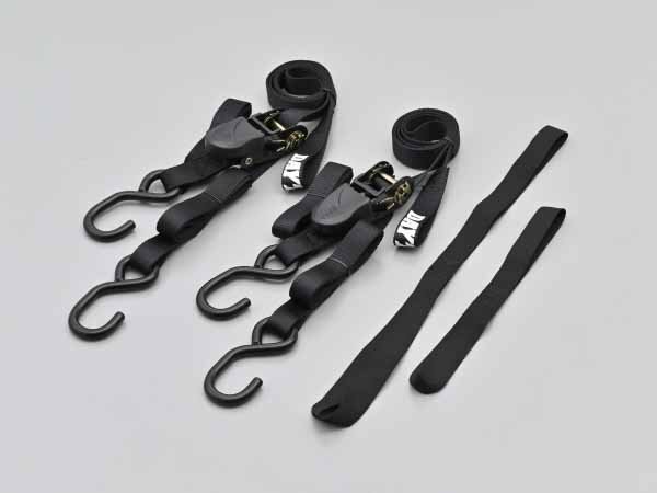トランポにサイドスタンドで積載することを想定し、長の違うサブベルト(長さ300mmと500mm/各1本)が付属します。