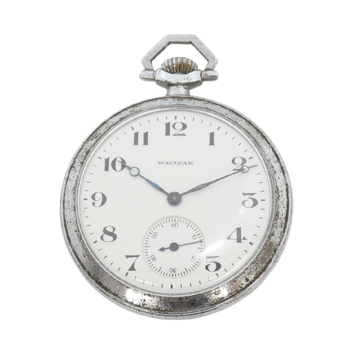- 1円スタート 稼働品 WALTHAM ウォルサム 懐中時計 手巻き 機械式 スモセコ ラウンド シルバーカラー ホワイト文字盤 アンティーク