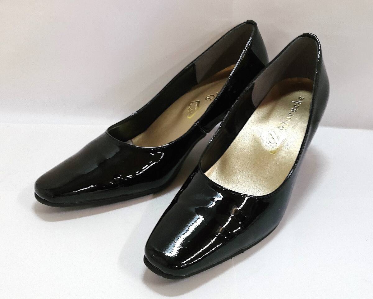 - M[宅60]4519 Doruche ドルチェ パンプス チャンキーヒール 22.5cm EEE エナメルブラック 日本製 卒業式 入学式 フォーマル 未使用品