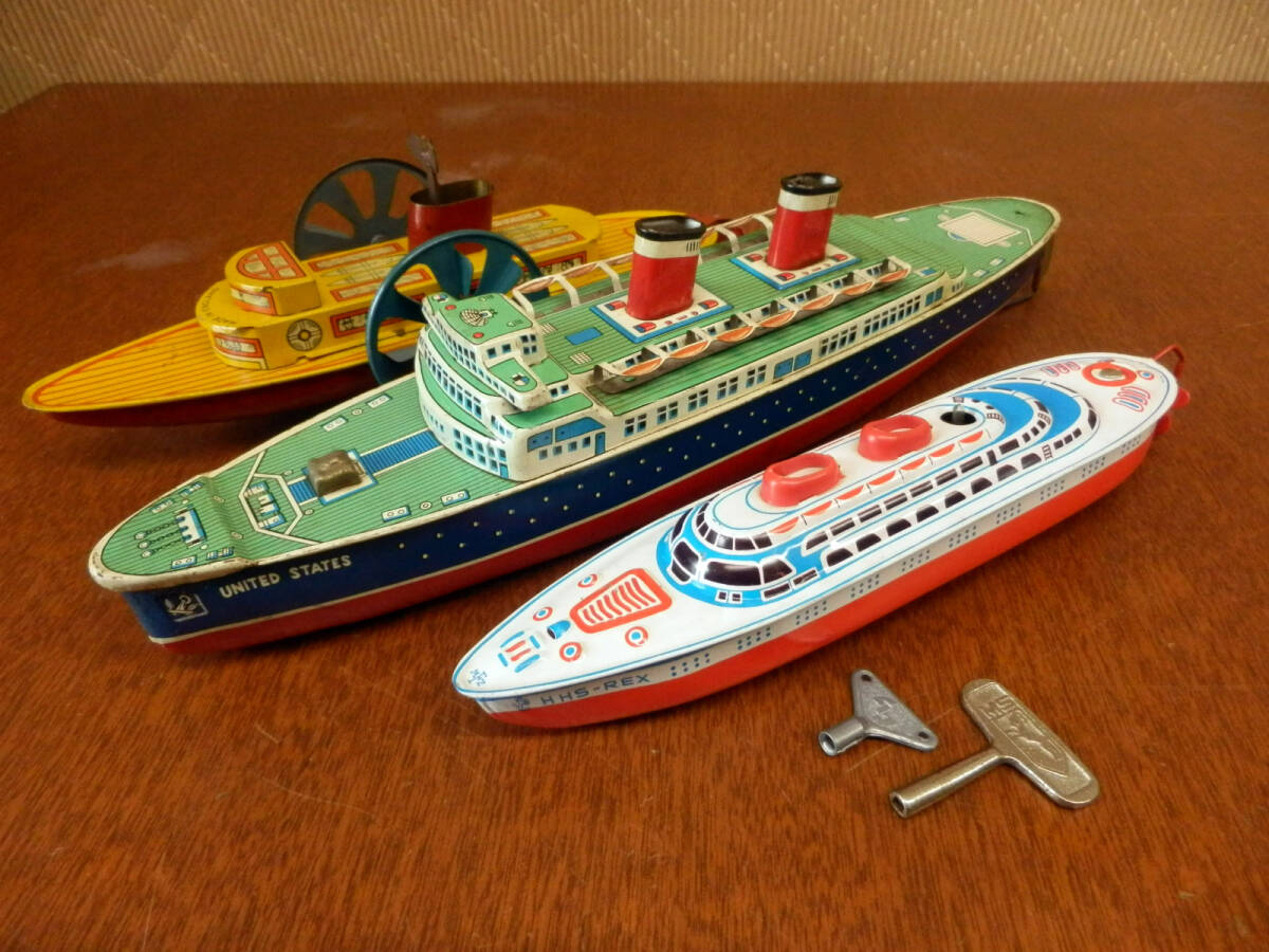 - ブリキ おもちゃ / 蒸気船 ポンポン船 England(英国製) Japan(日本製) Western Germany(西ドイツ製) まとめて3点set ヴィンテージ 箱無