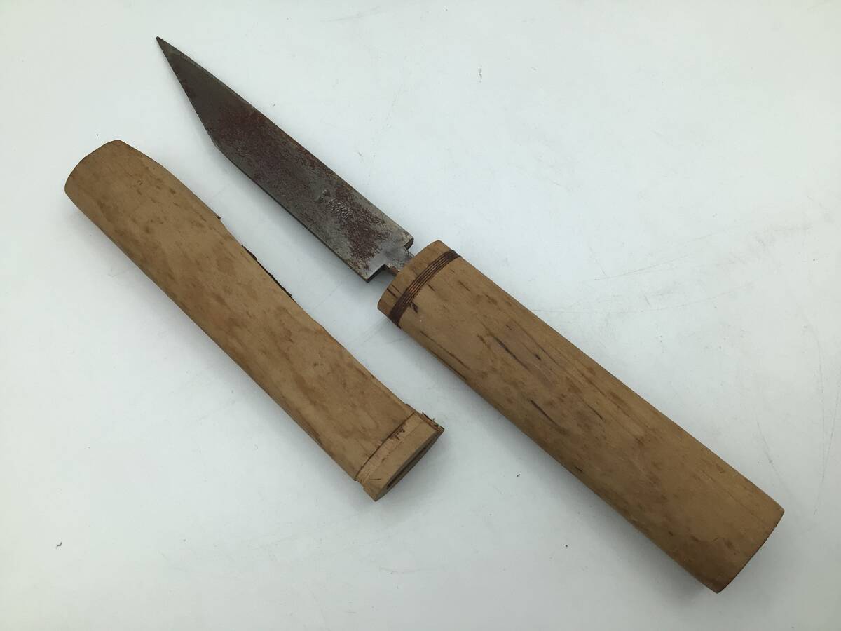 > M5663 東大吉 切出小刀 包丁 サヤ付 刃渡り約13cm 銘あり ナイフ 現状品
