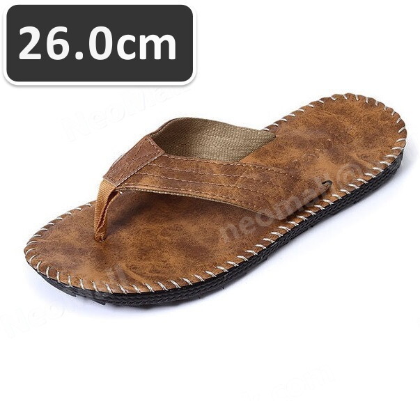 - 1スタ メンズ PUレザー ビーチサンダル キャメル 26.0cm ☆076 リゾ-トサンダル