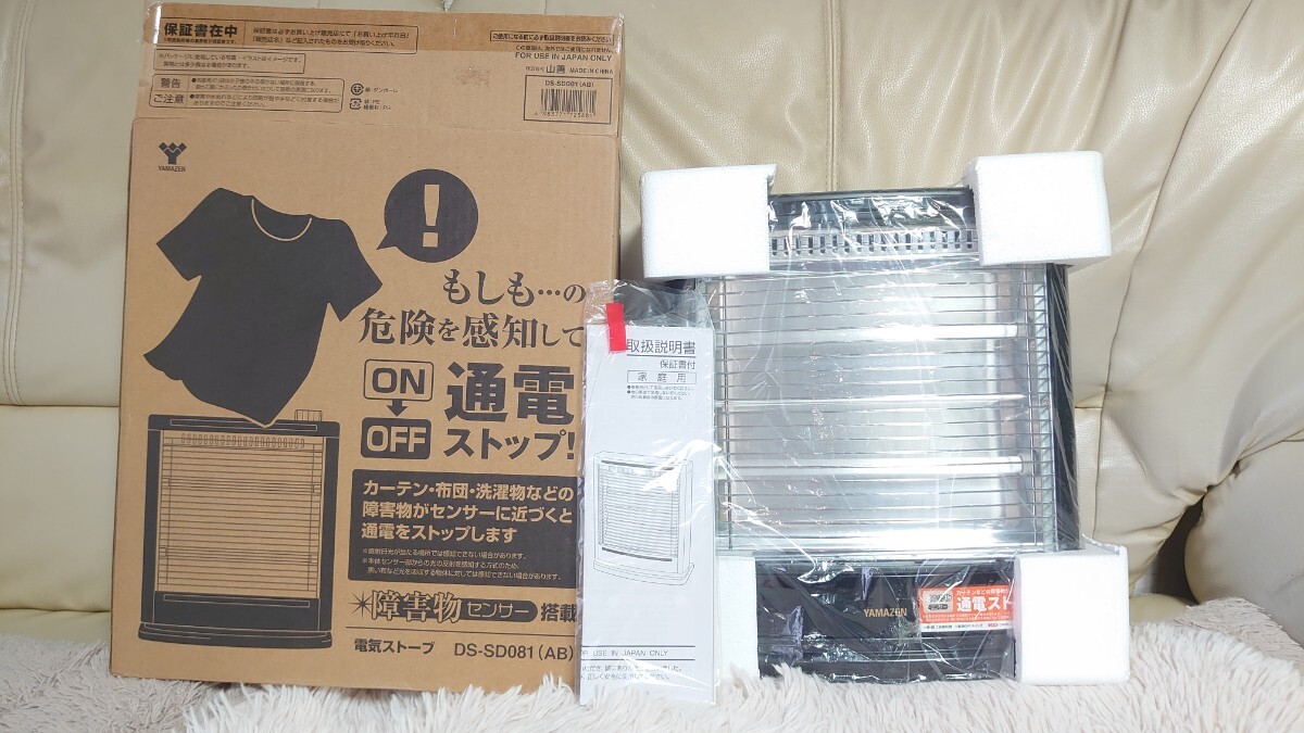 - 電気ストーブ・山善:DS-SD081(AB※アッシュ黒) ★障害物センサー付! 転倒OFF付 ☆動作確認及び撮影の為に開封(在庫品)◇土日祝も発送