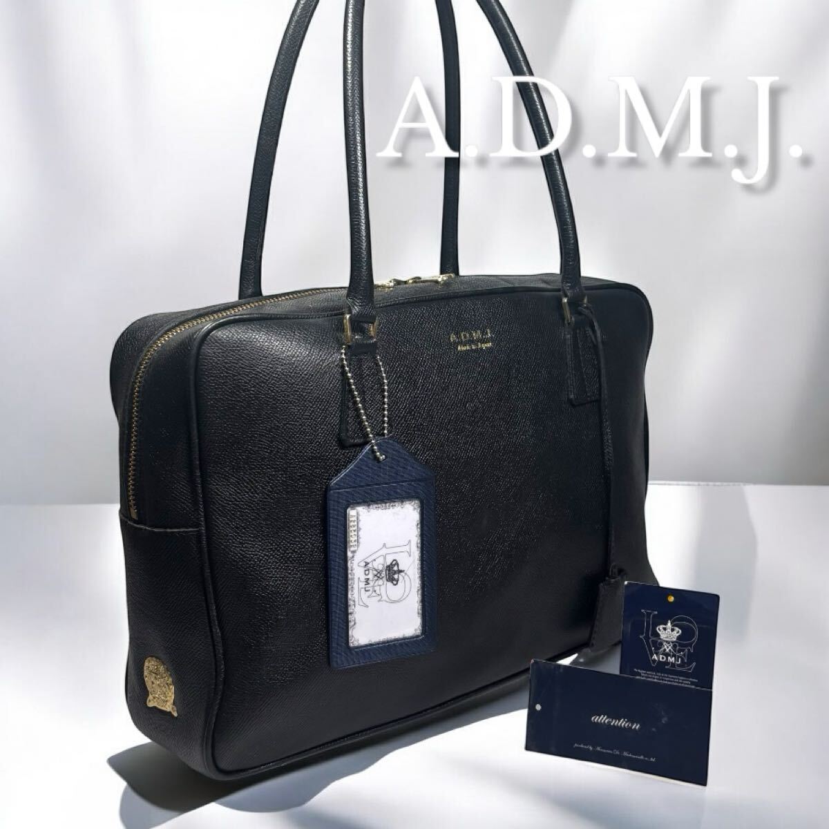 - ADMJ エーディーエムジェイ レディース メンズ ハンド トートバッグ ブラック 黒 レザー 本革 アクセソワマドモァゼル スクエア A4