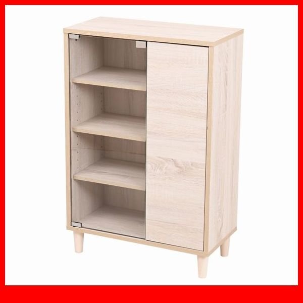 - キャビネット★新品/Adatto ガラス&扉/本棚 食器棚 ディスプレイラック 多目的収納 可動棚/ナチュラル/a2