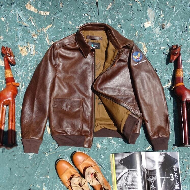- 新しいシンプルなヘッドコート牛革パイロットジャケット