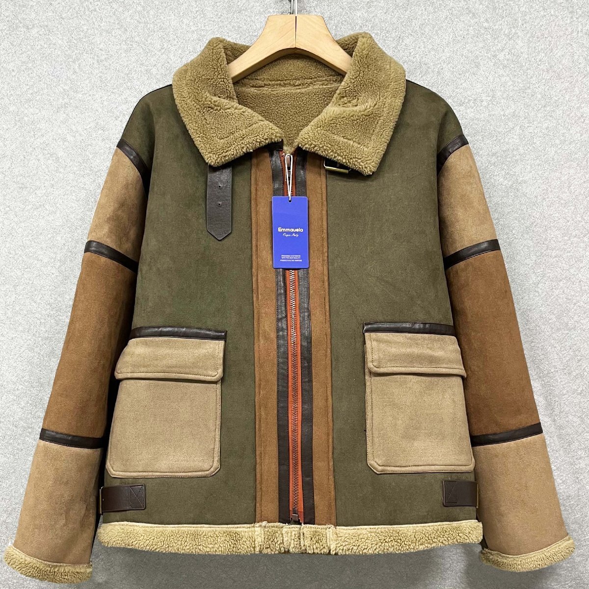 - 高級・レザージャケット 定価13万◆Emmauela・イタリア・ミラノ発◆上質羊革 シープスキン 裏起毛 防寒 ライダース ボマー 革ジャン M/46