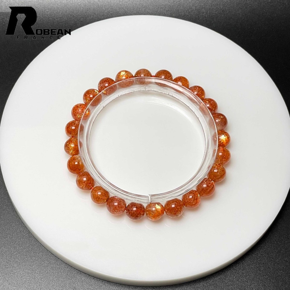 - 高級 EU製 定価10万円★ROBEAN・サンストーン★パワーストーン ブレスレット アクセサリー 太陽石 勝利 金運 7.3-7.8mm L0315261