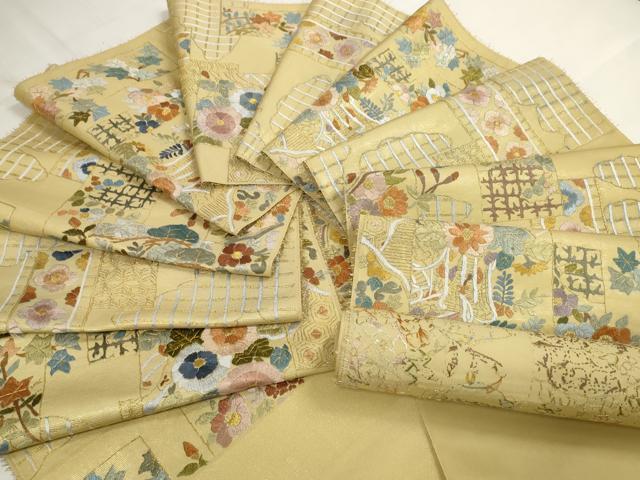 - 平和屋着物▼袋帯 帯反物 裏地付き 総刺繍 御所車花文 金糸 逸品 未使用 DAAW8073zzz