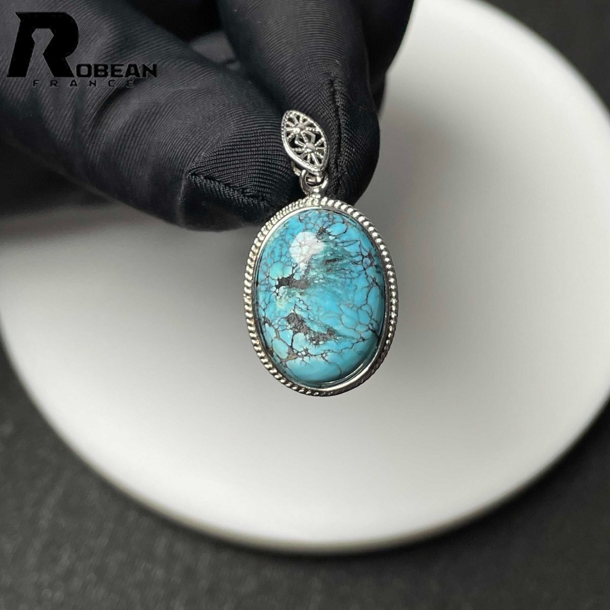 > 貴重 EU製 定価8万円★ROBEAN・ターコイズ トルコ石・ペンダント★アクセサリー 天然石 きれいめ 約18.3*13.3*5.4mm M084229