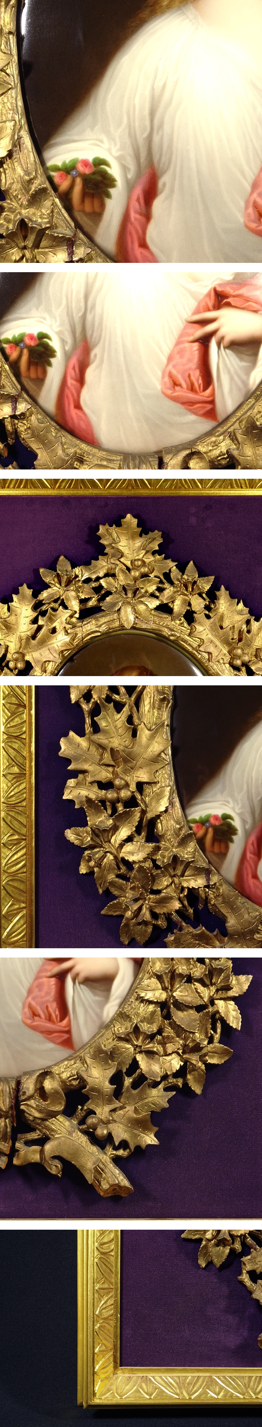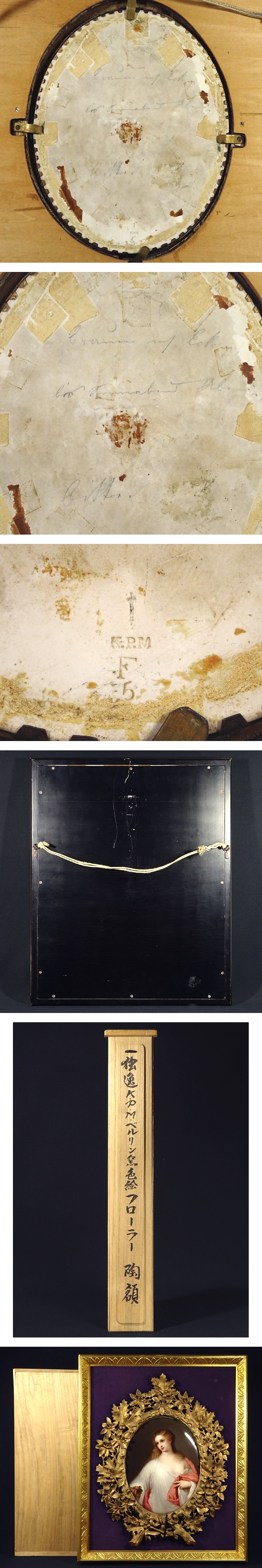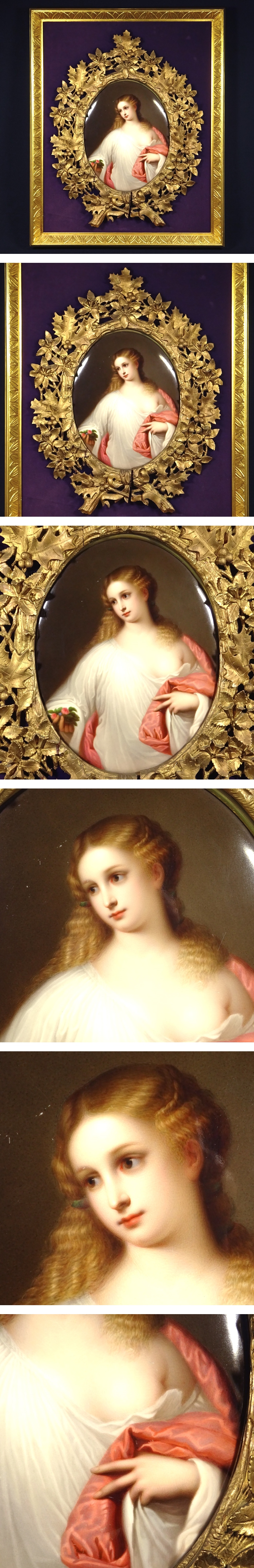 > 慶應◆19世紀後期【KPM ベルリン王立磁器製陶所】総手描き細密陶板画 ティツィアーノ原画『Flora フローラ』プラーク 豪華二重仕立て額装