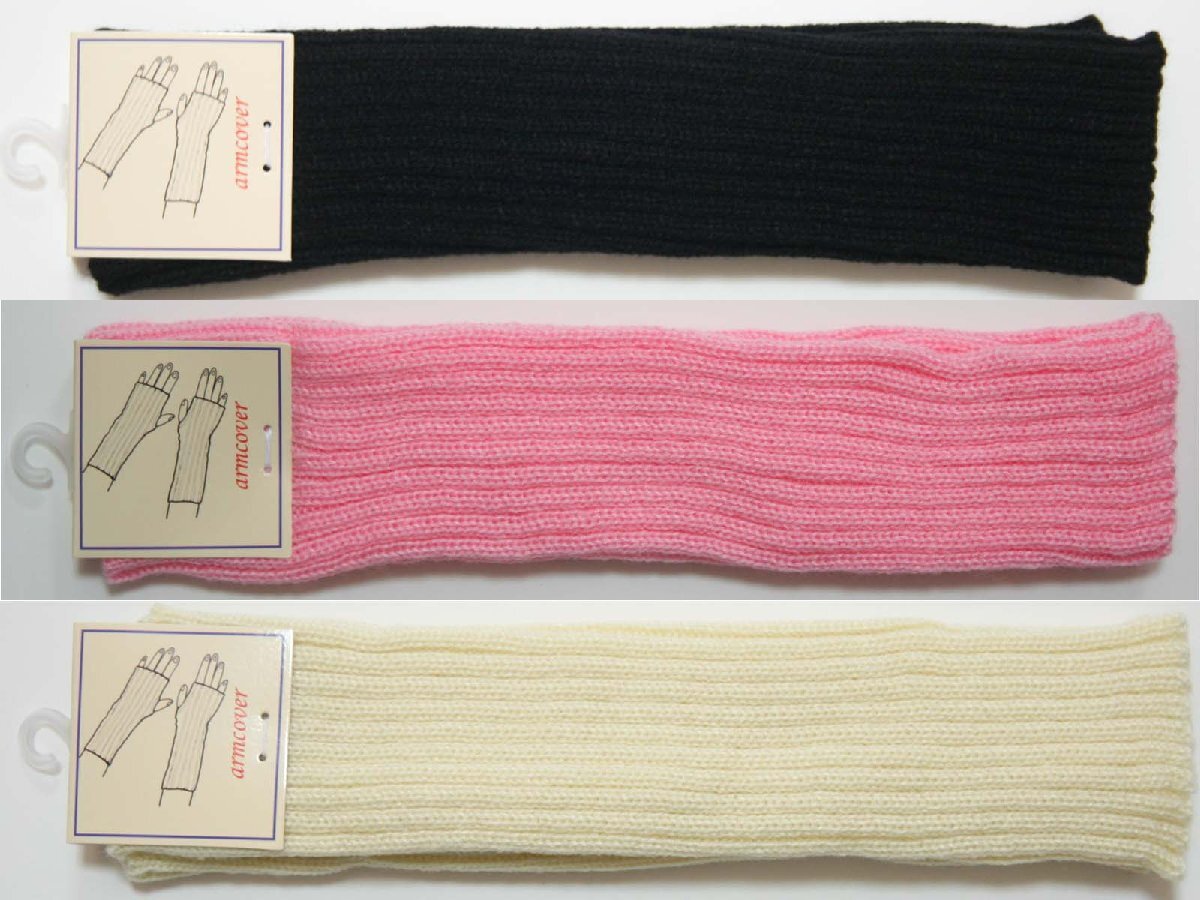 - 送料無料◆3色組◆アームウォーマー◆親指穴付き◆無地◆リブ編み◆あったかアームカバー(ブラック&ライトピンク&クリームベージュ)