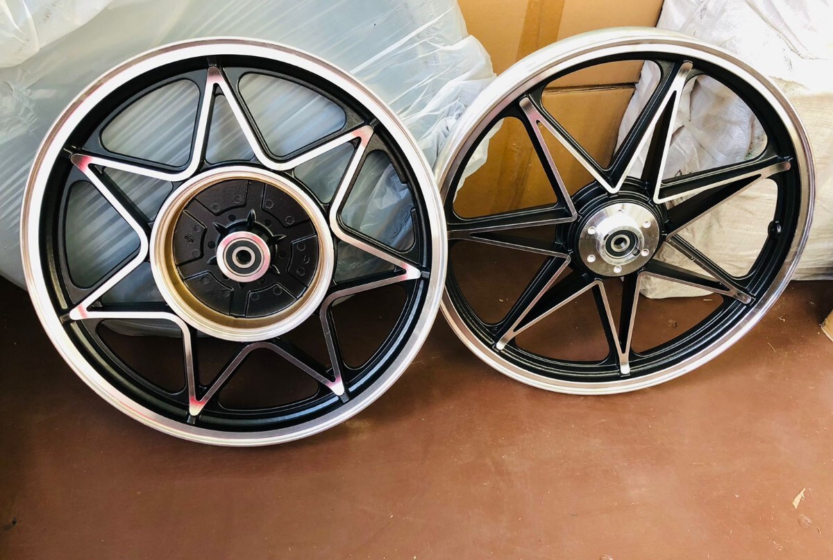 - 1円売切 希少 当時物 美品 GS400 JYS セブンスターキャストホイール黒 前後セット 1.85×18 2.15×18 激レア 歪み無 GT380 GSX400E @