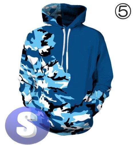 - フード付き 迷彩パーカー カモフラ ブルー S トレーナー アウター 防寒 n721