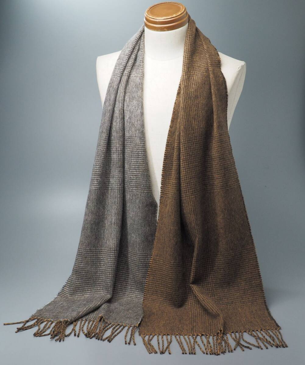 > MH4224◎スコットランド製 Johnstons ジョンストンズ 総カシミヤ グレンチェック 切替 マフラー ストール ショール 全長:約204cm