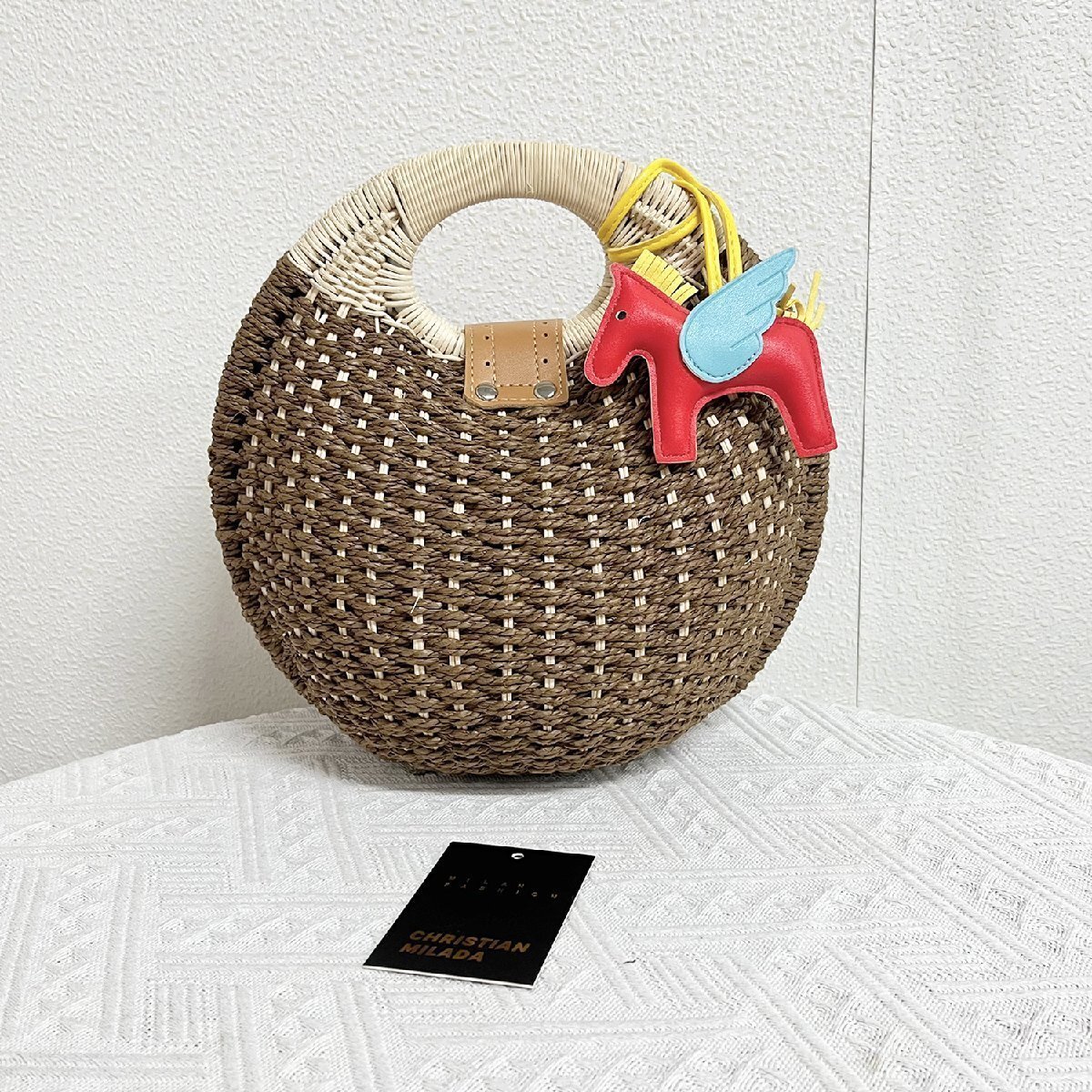 - 人気EU製 定価11万★christian milada・ミラノ発・カゴバッグ★上品 丸型 手作り ハンドバッグ 鞄 裏地付き 可愛い トレンド 日常 旅行