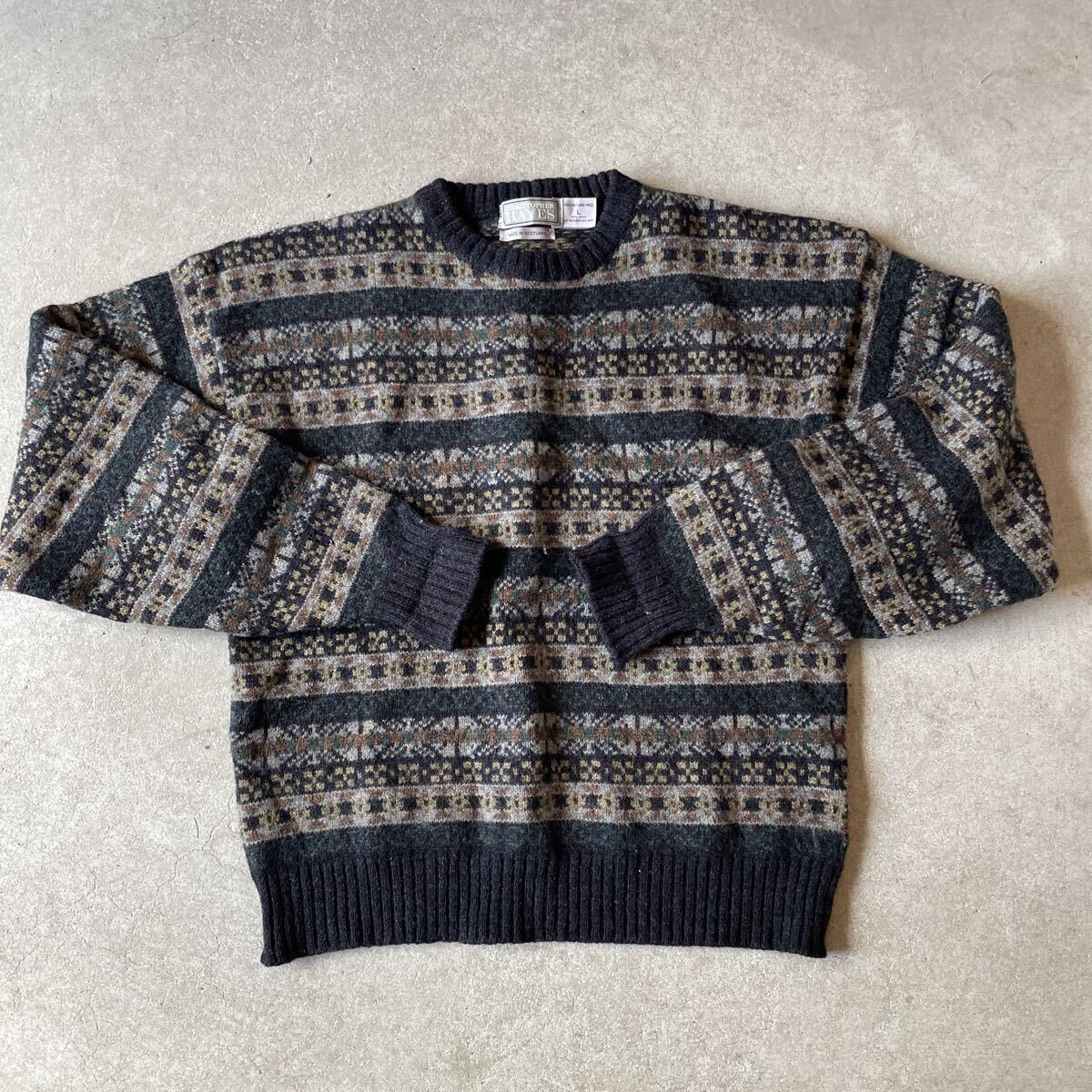 > ヴィンテージ スコットランド製 シェットランドウール100% ノルディック柄ニット 5 幾何学模様セーター L オーバーサイズ メンズ古着