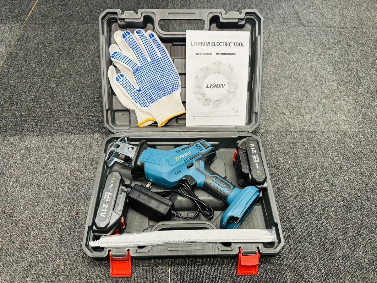 - 【1円〜】期間限定 電動のこぎり 21V 充電式レシプロソー 無段変速 替刃8本 バッテリー2個セット