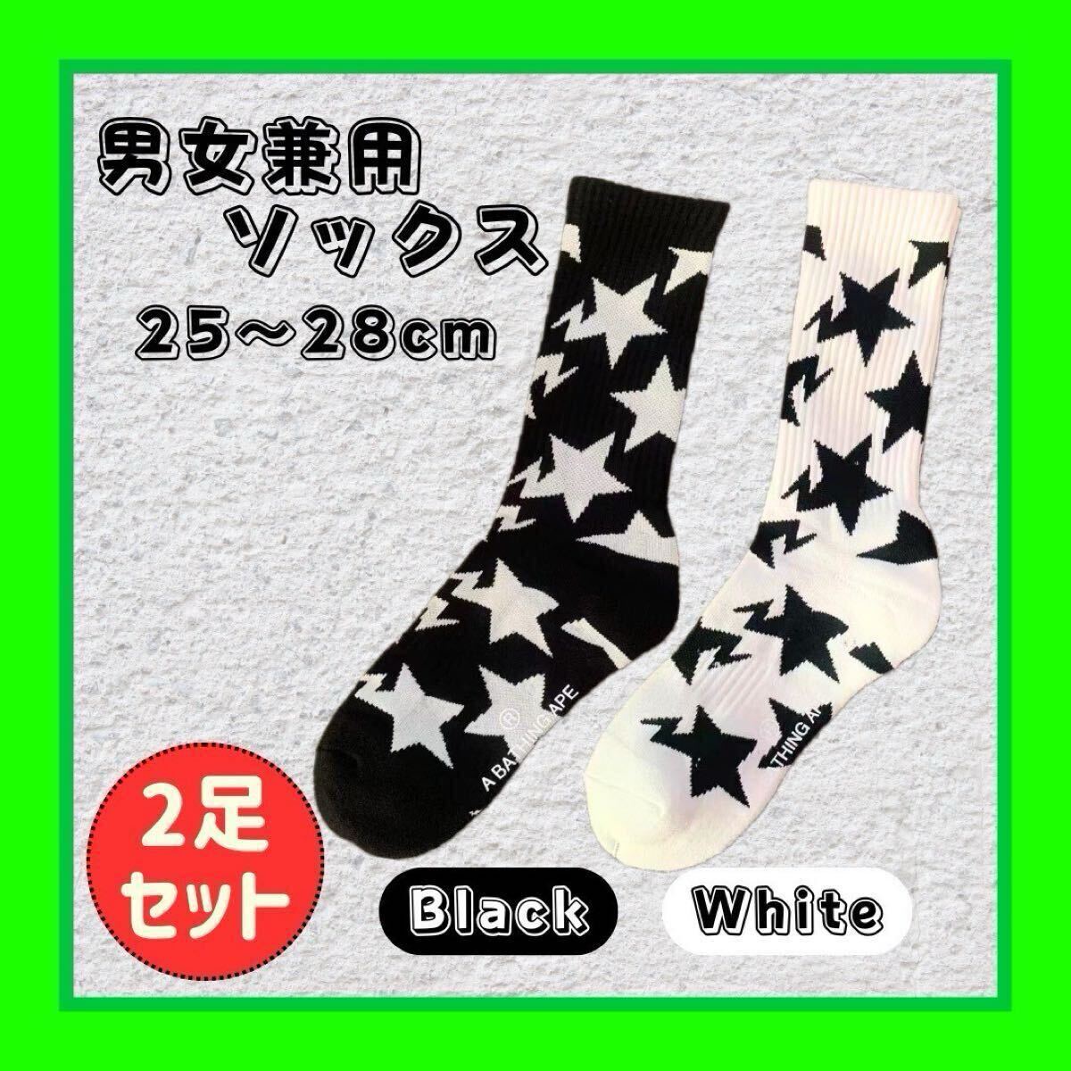 - 星柄クルーソックス 2足セット サイズ 25~28cm 男女兼用 メンズ レディース
