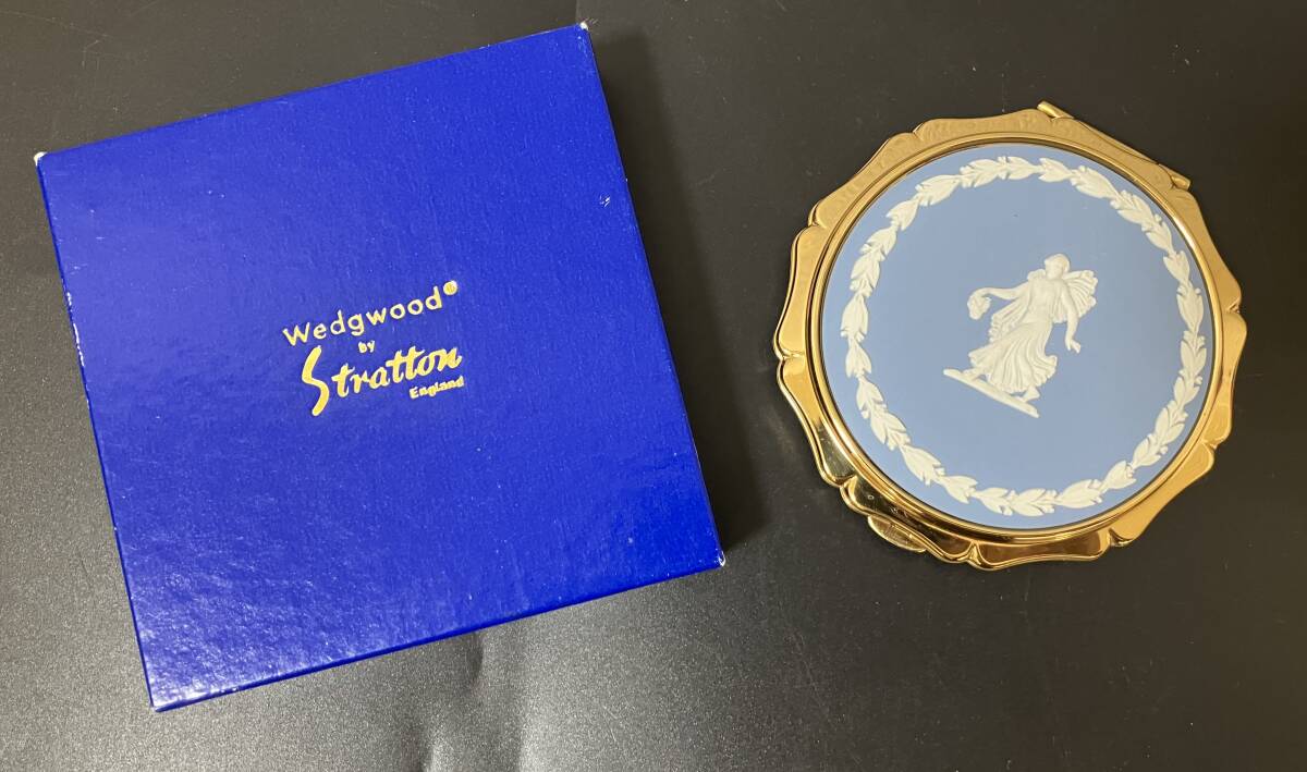 - 【29763】WEDGWOOD ウェッジウッド WEDGWOOD by stratton 手鏡 コンパクトミラー ライトブルー×ゴールド 中古品 現状品