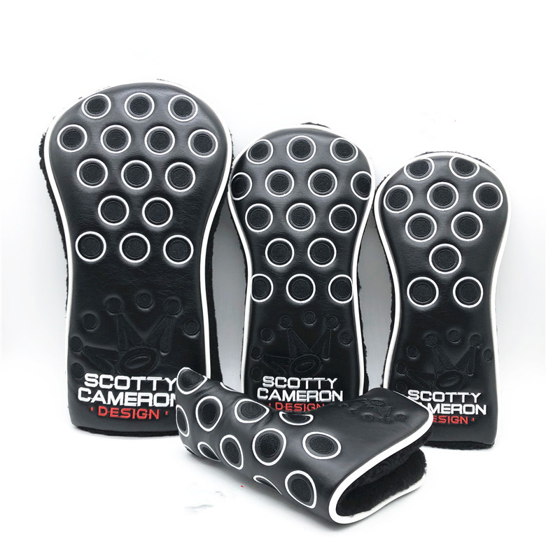 - スコッティキャメロン★ウッド用カバー1W・3W・UT &パター用 4点セット★CROWN 黒×白