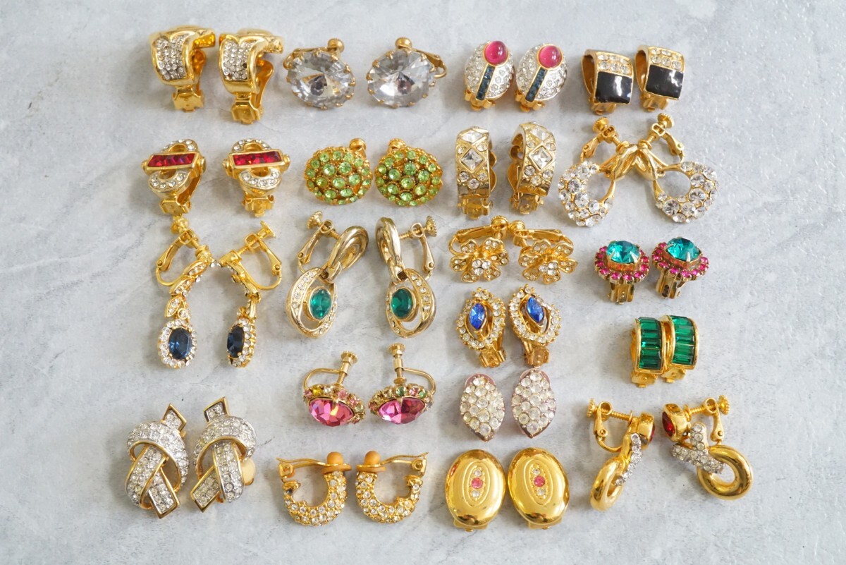 - C1171 ラインストーンなど 海外製含む ゴールドカラー ヴィンテージ イヤリング 両耳揃い 20点セット アクセサリー 大量 まとめて おまとめ