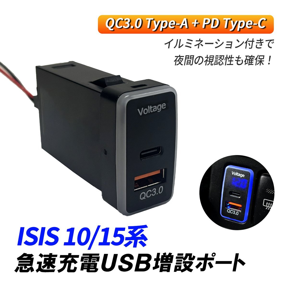 > アイシス 10系 15系 USBポート 増設 トヨタ Bタイプ USB増設 スイッチホール QC3.0 PD3.0 急速充電 2ポート USB電源 充電器 スタム パーツ