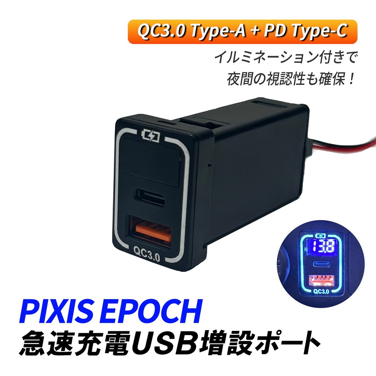 > ピクシスエポック LA300A LA310A USBポート 増設 QC3.0 急速充電 トヨタ Aタイプ USB電源 2ポート スイッチホール パネル 内装 パーツ