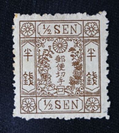 - ☆コレクターの出品 未使用/正真『手彫切手/洋紙桜切手』半銭(ロ) H-23