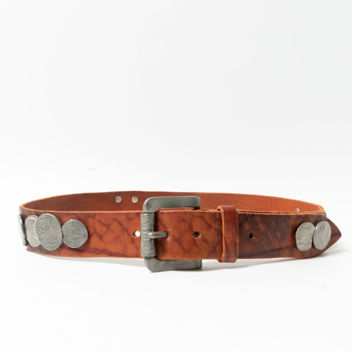 > 【1円スタート】Paul Smith ポール・スミス レザーベルト 革ベルト Lサイズ ブラウン 本革 コインチャームデザイン 5つ穴 4cm幅 メンズ