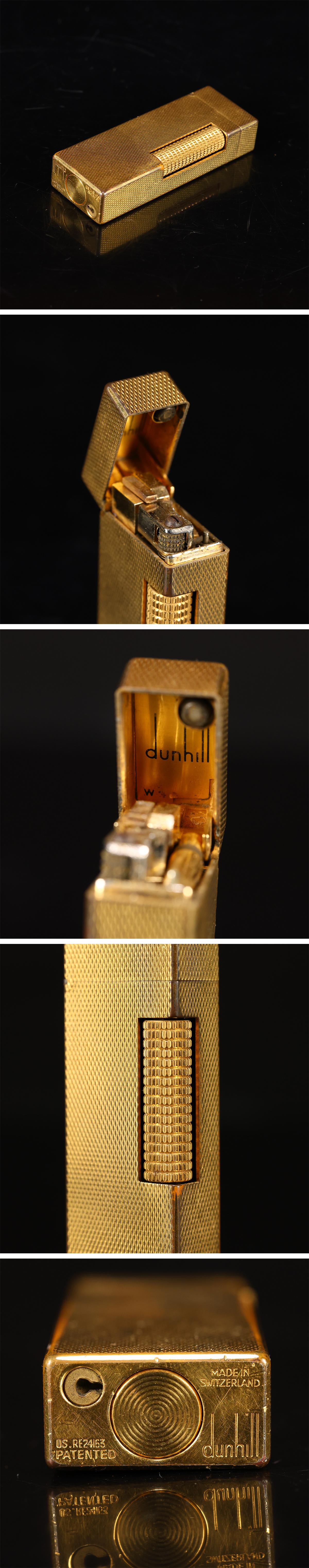 > 【吉】ZD694 【dunhill】 ダンヒル ガスライター ゴールド/発火確認済 時代の擦れあり!