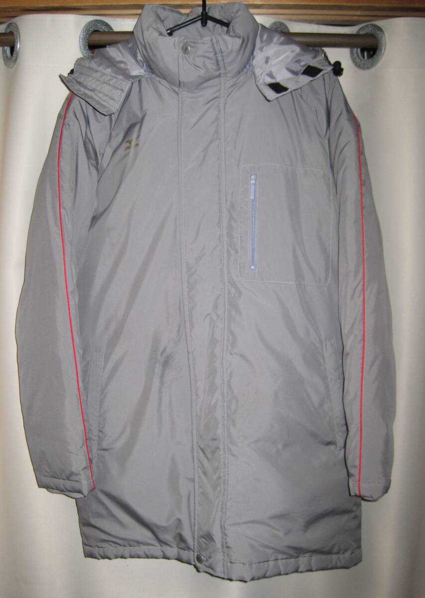 - MIZUNO ミズノ ベンチコート ジャケット フード付き グレー M 防寒 観戦