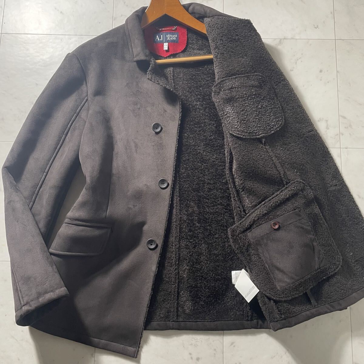 > 超弩級XXL!!!別格のオーラ!!!【アルマーニ ARMANI】エコ ムートンコート ジャケット ステンカラー ロゴ◎ ボア◎ 毛皮◎ 52◎