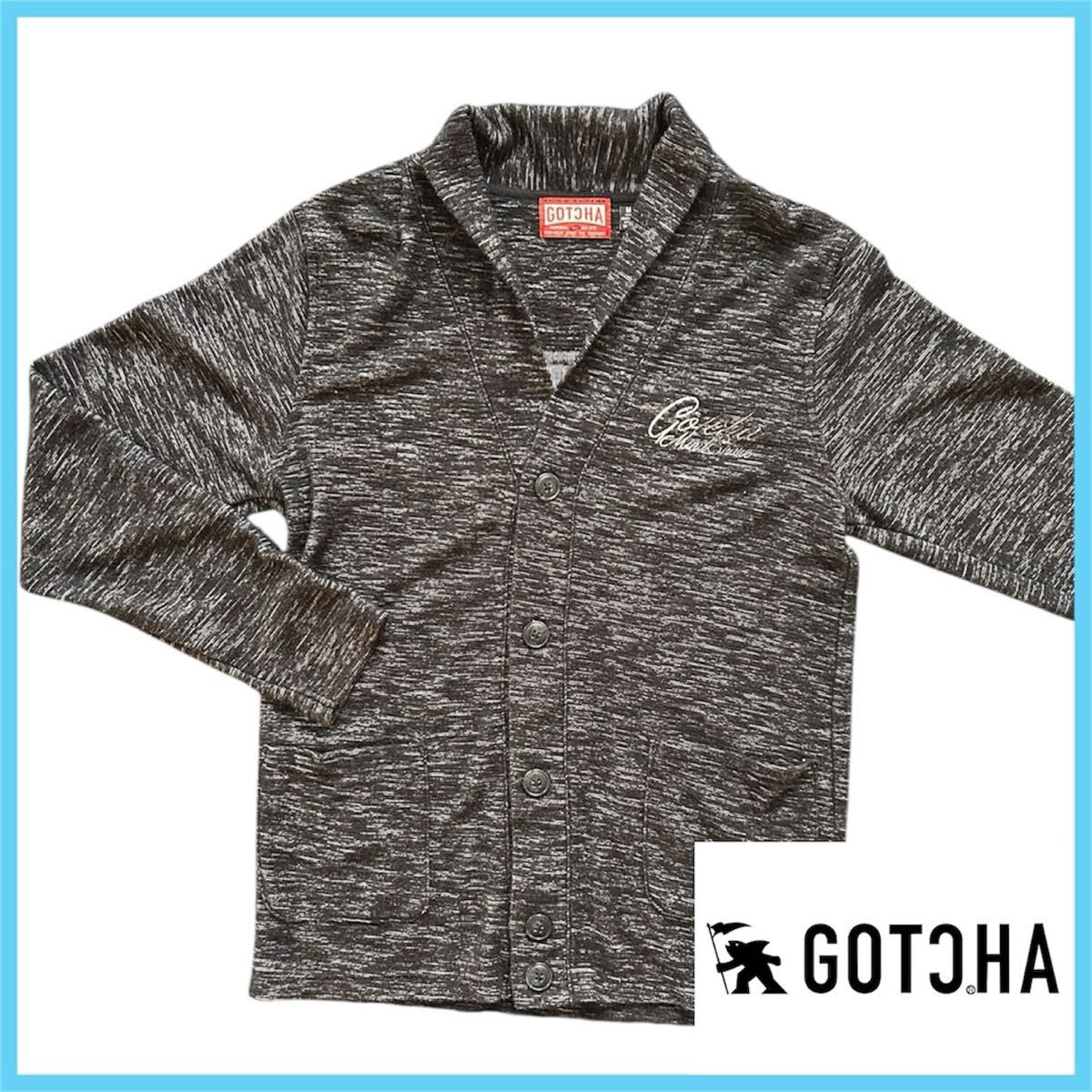 - R■ GOTCHA ガッチャ カーディガン Mサイズ グレー ショールカラー 刺繍ロゴ Remember Your Roots サーフ系 メンズ 羽織り アウター