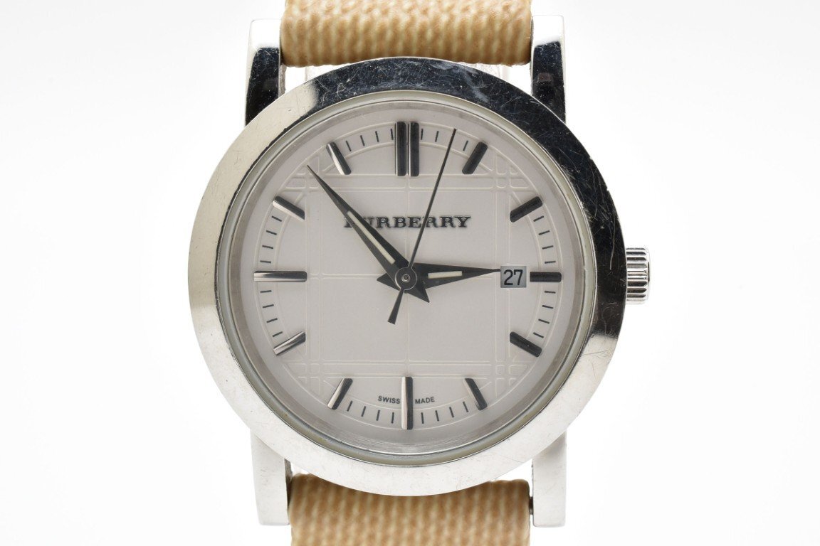 > BURBERRY バーバリー クォーツ ラウンド 腕時計 メンズ レディース 3針 デイト ホワイト シルバー BU1387