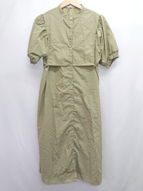 - ◇ ⊂ prose verse プロズヴェール シャツ シンプル 半袖 膝下丈 ワンピース サイズF カーキ系 レディース E