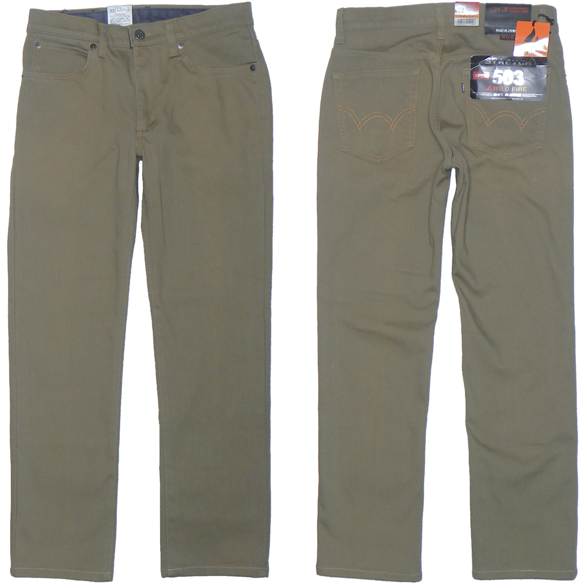 - EDWIN 503 WILD FIRE W32【暖】裏起毛 防風 透湿 ワイルドファイア ストレートストレッチデニムパンツ ジーンズ カーキ エドウィン 503WF