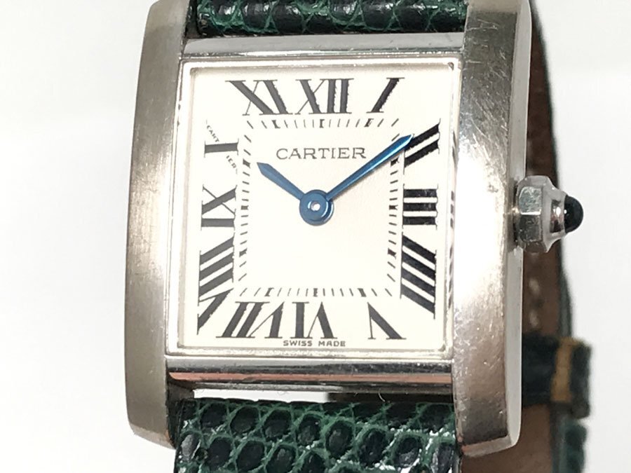 - ◆動作品!Cartier カルティエ タンクフランセーズSM 2403 18K 142719CD クォーツ 腕時計 2針 革ベルト(社外品 poiray) レディース