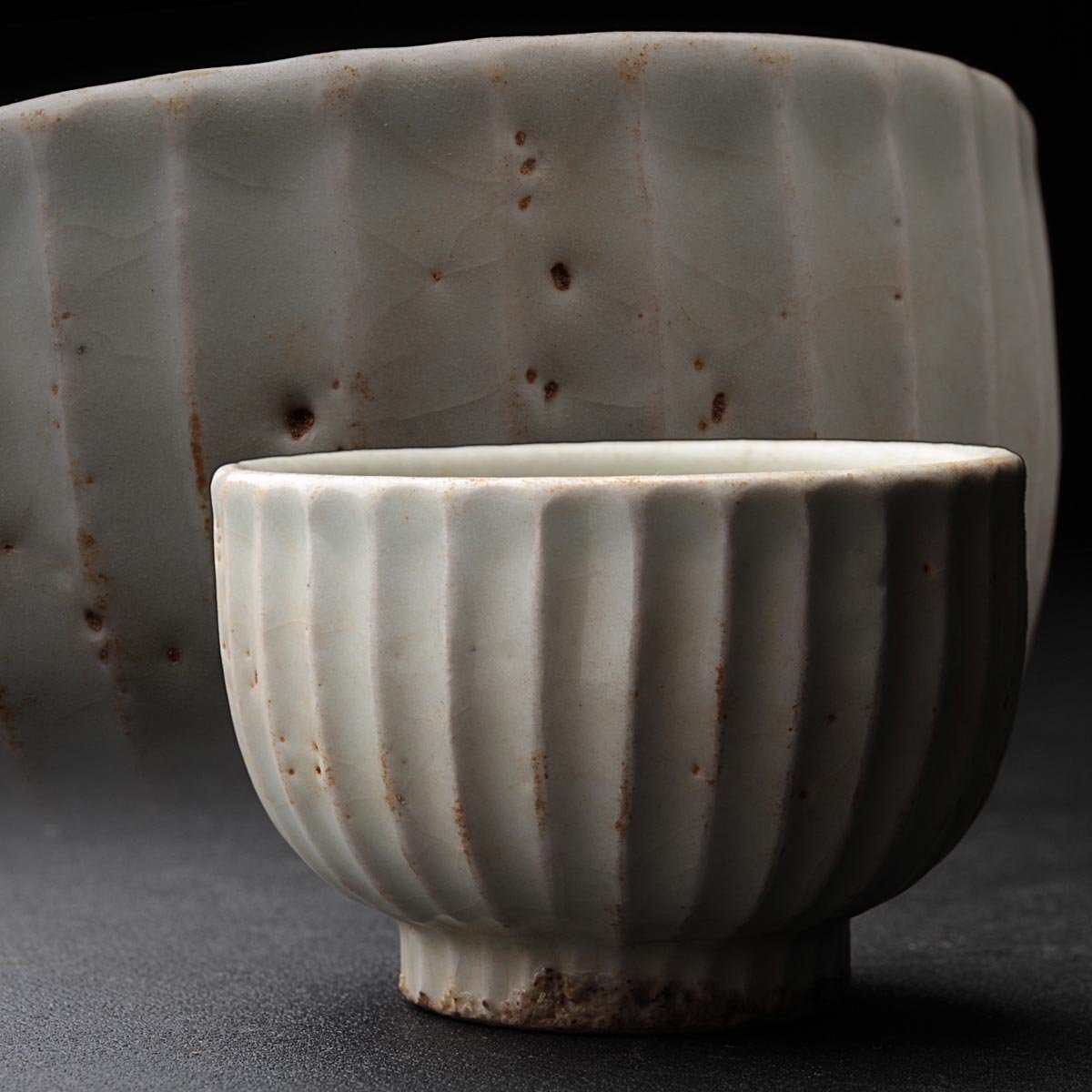 - ZN294 朝鮮美術 李朝白磁縞盃・李朝白磁縞文盃 径7cm・李朝白磁杯・ぐい呑・猪口 朝鮮古陶 朝鮮古美術