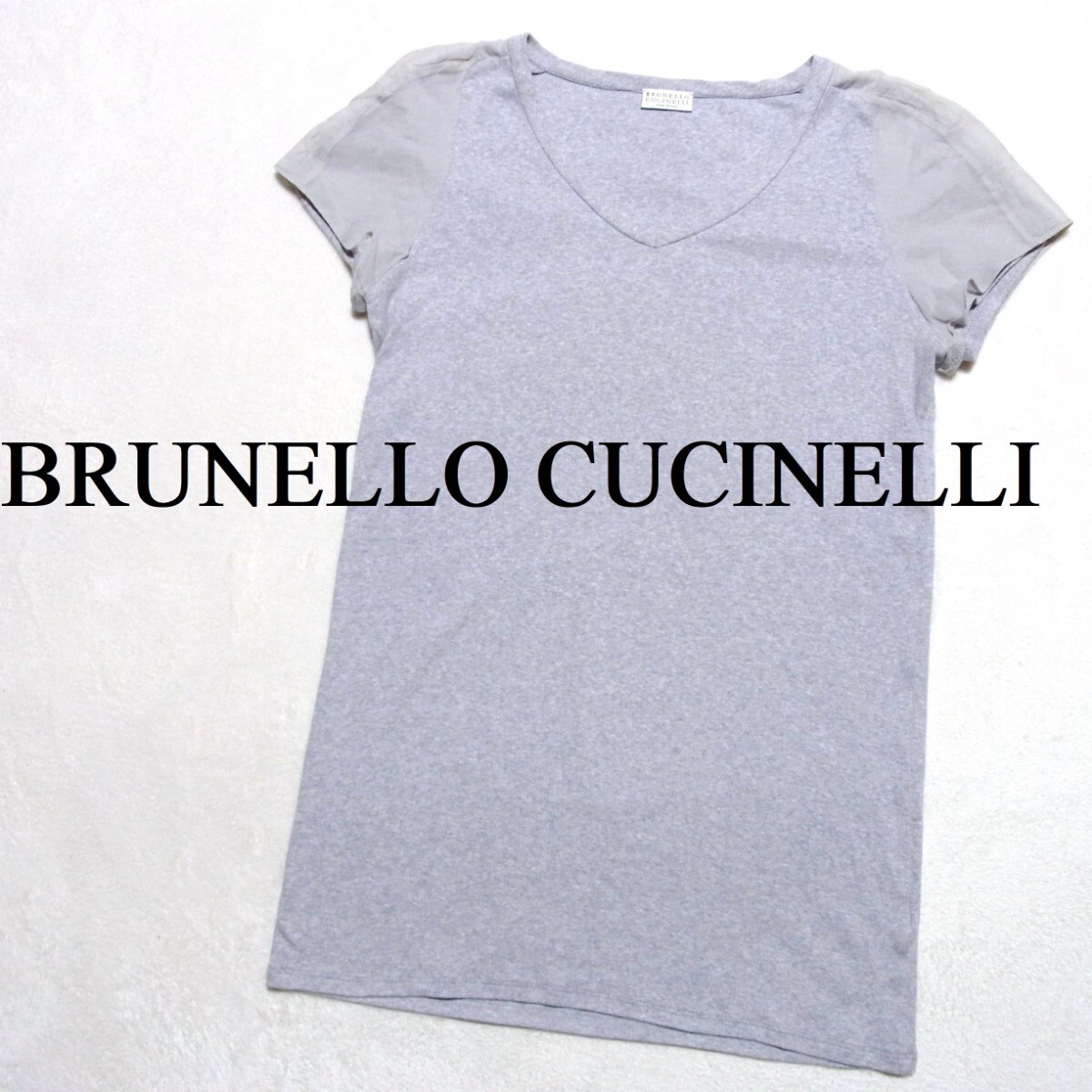> 大きいサイズ BRUNELLO CUCINELLI ブルネロクチネリ 切替 Vネック リブ カットソー Tシャツ XXL グレー