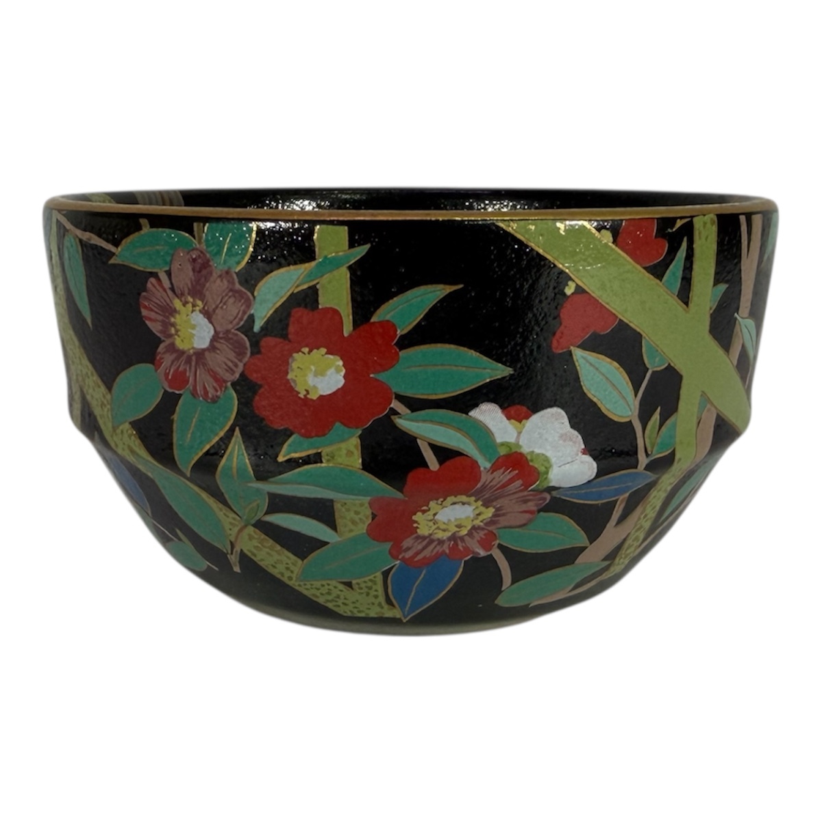 - 6Wl/2-9 桑野むつ子(睦子)御所の花 十二月 山茶花 抹茶碗 茶器 茶道具