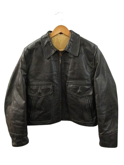 > エアロレザー AEROLEATHER ロングショアマン レザー ジャケット ホースハイド ムートン シープスキン 茶芯 ブラック 42 メンズ
