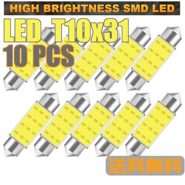 - 「送料無料」10個セット/ LED T10 x 31mm, COB 7000k C5W C10W, ホワイト,車内灯,ウインカーランプ/ 高耐久,低消費,長寿命 rs