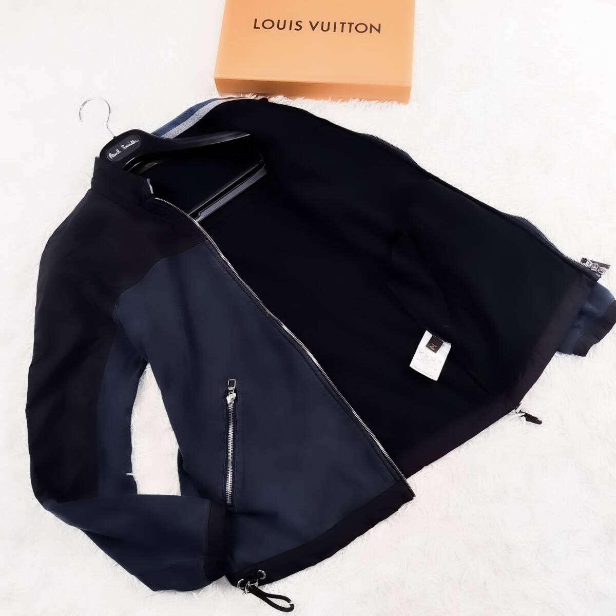 > 最高級シルク!LOUIS VUITTONジップアップトラックジャケット絹シルク スウェットM~Sモノグラムロゴ金具ネイビー紺黒イタリア製ルイヴィトン