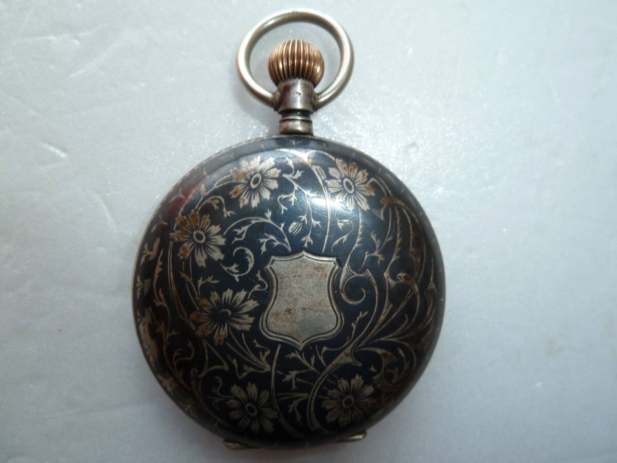- 希少 メーカー不明 手巻き 懐中時計 銀無垢 0.800 花柄 彫金 ハンターケース 剣引き式 現状
